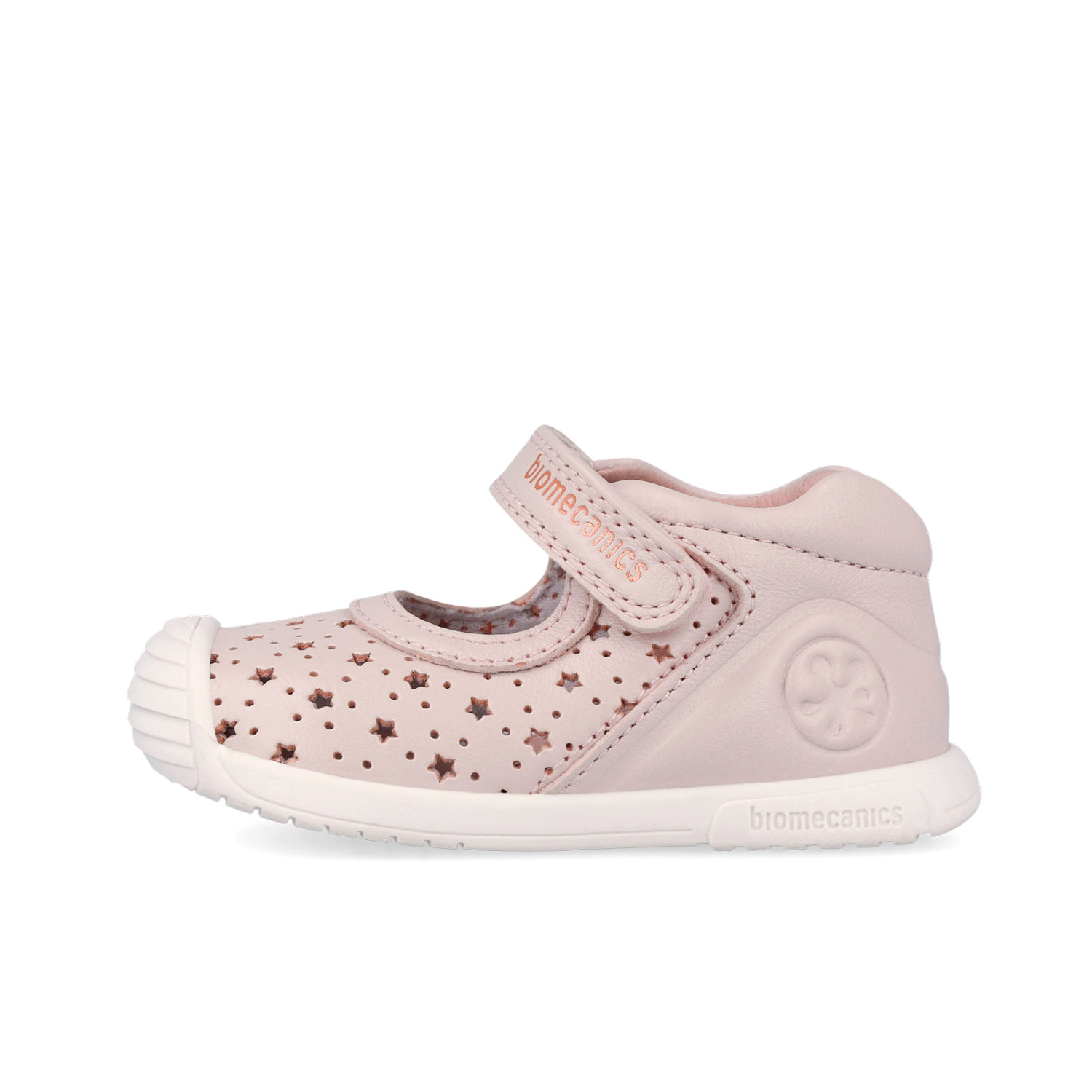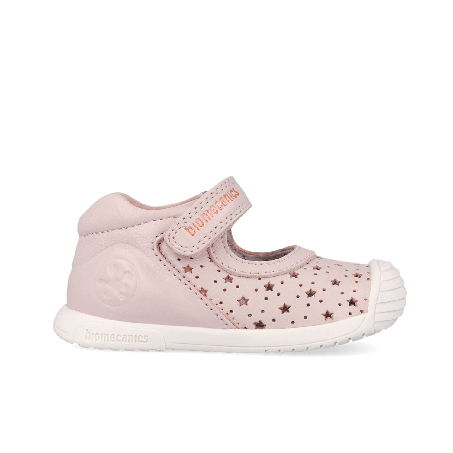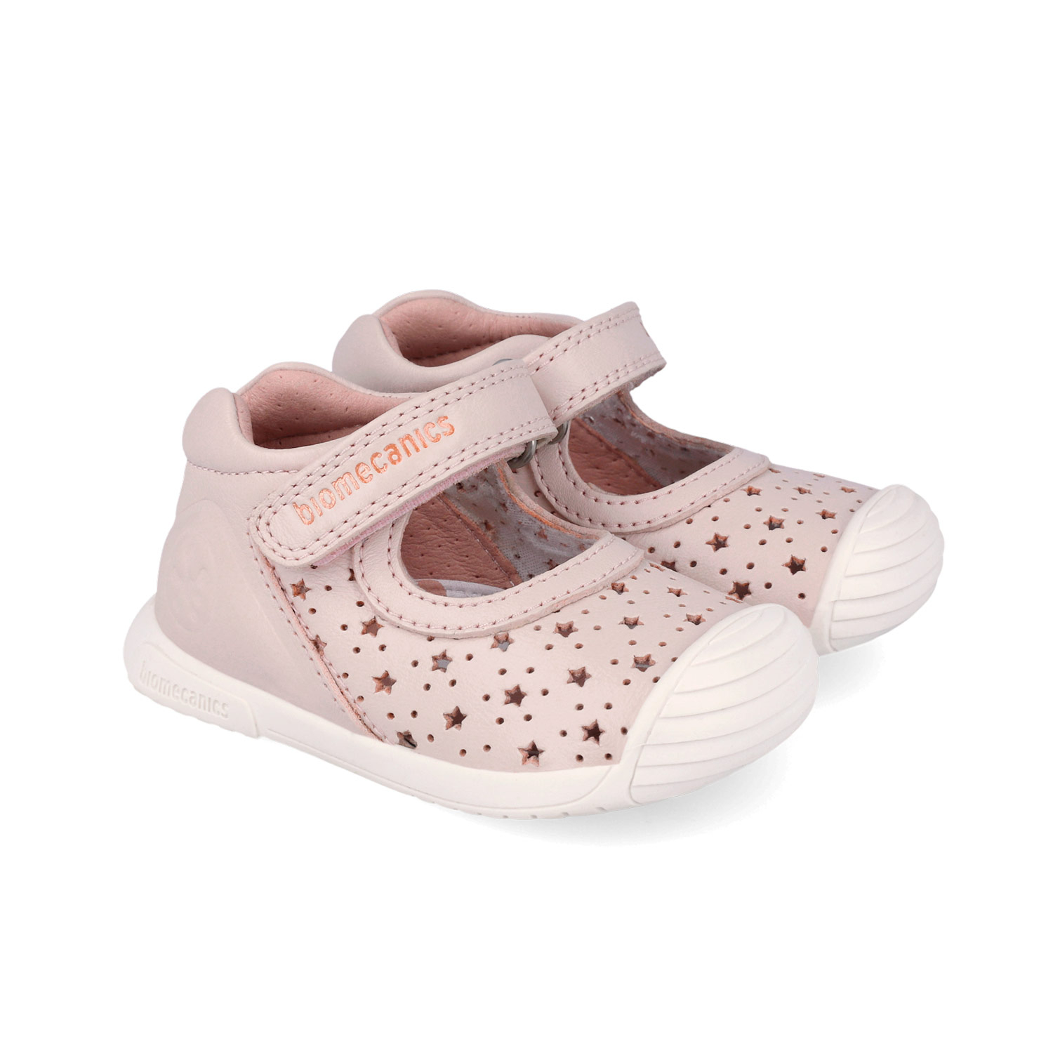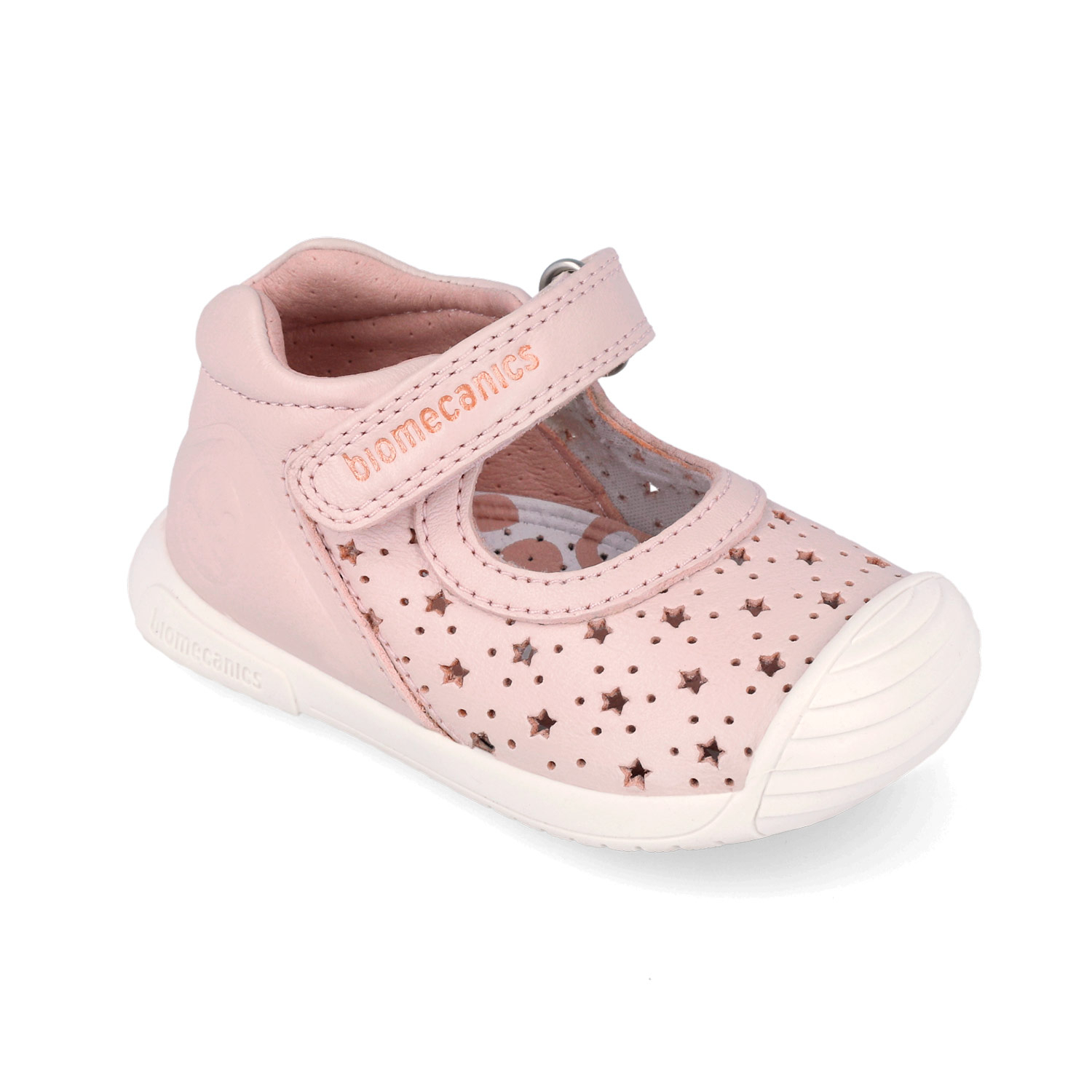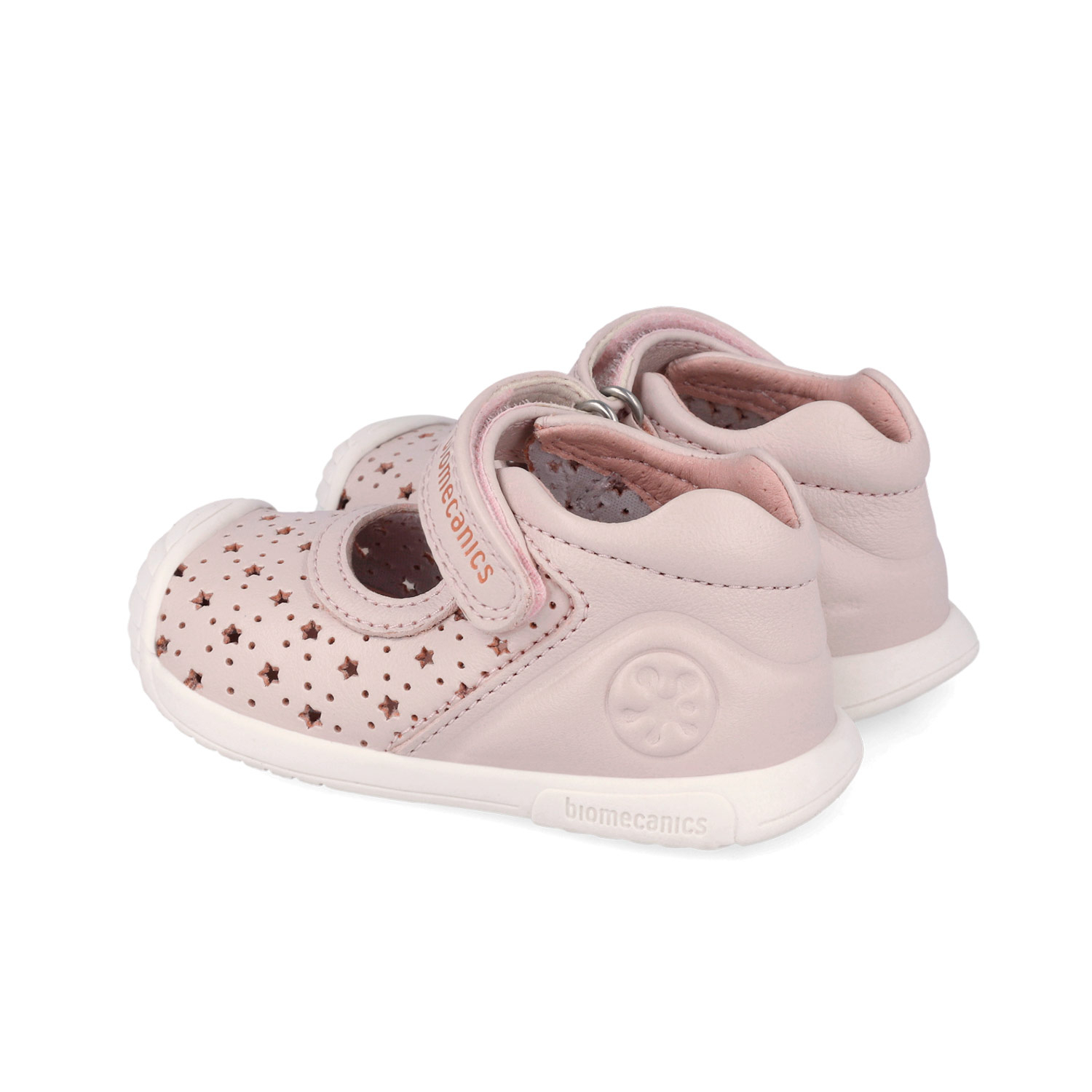 Balerini fete din piele naturală, model perforat cu steluțe, roz pal - Biomecanics
